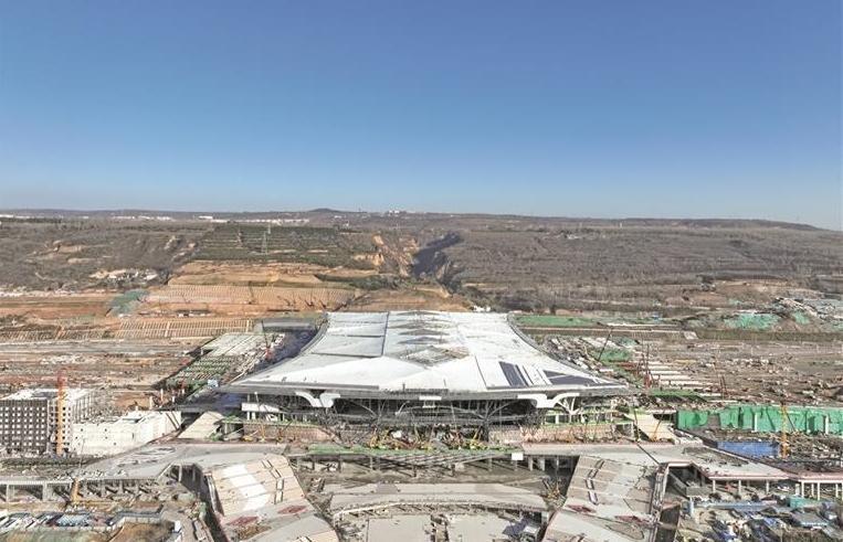 1月3日,冬日的雁鸣湖畔寒意正浓,西安东站建设工地上却热潮涌动。图为航拍的西安东站项目一角。
