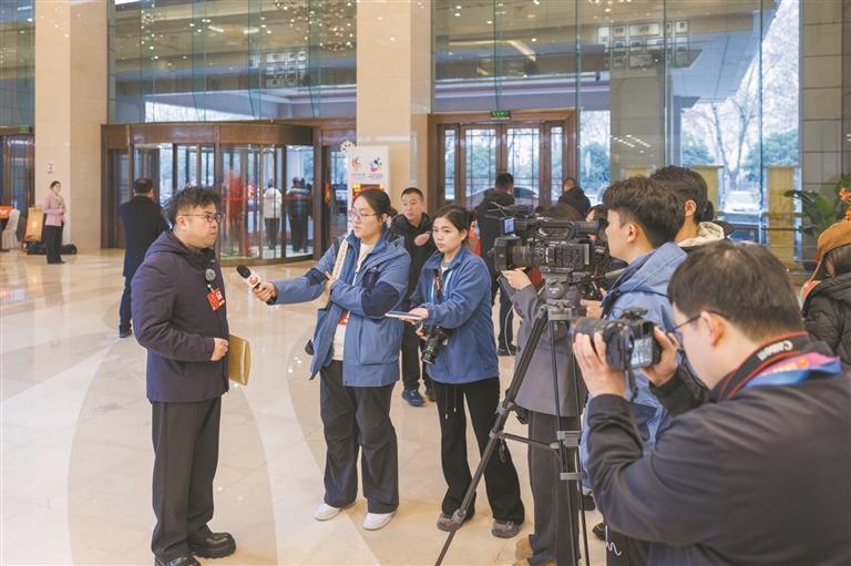 1月25日,出席政协陕西省第十三届委员会第四次会议的省政协委员接受媒体采访。本报记者 梁易炜摄