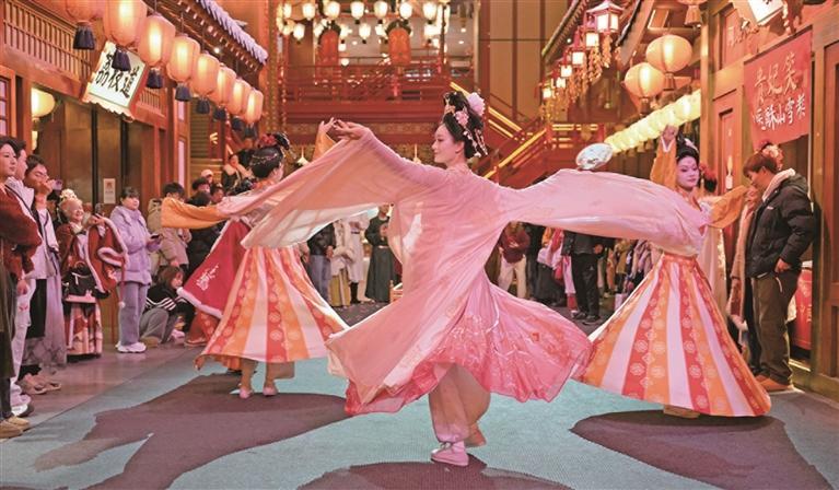 2025年12月23日,演员在街区内进行沉浸式表演。近期,经过焕新升级的西安长安十二时辰主题街区正式与游客见面。此次升级聚焦演艺、场景、互动等方面,进一步提升了街区的沉浸感、互动性与文化感染力,使游客在古城西安能够更具象地感受大唐风貌、领略大唐繁华(资料照片)。 新华社记者 邵瑞摄