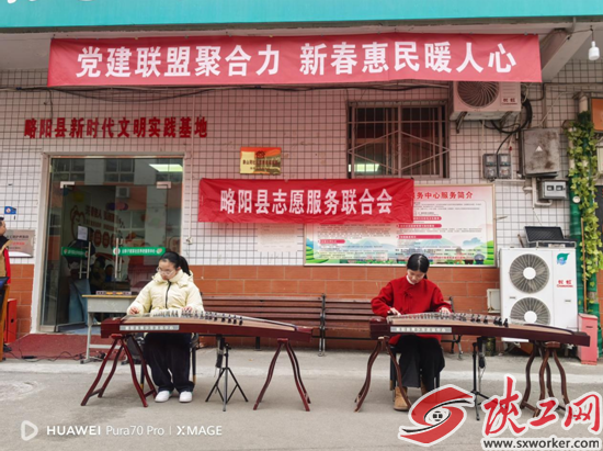 陕工网讯(吴耀晴 张建萍) 近日,略阳县青少年活动中心组织书法班、古筝班的小学员们走进社区,开展“迎新春送祝福”主题实践活动,受到社区居民青睐和赞许。