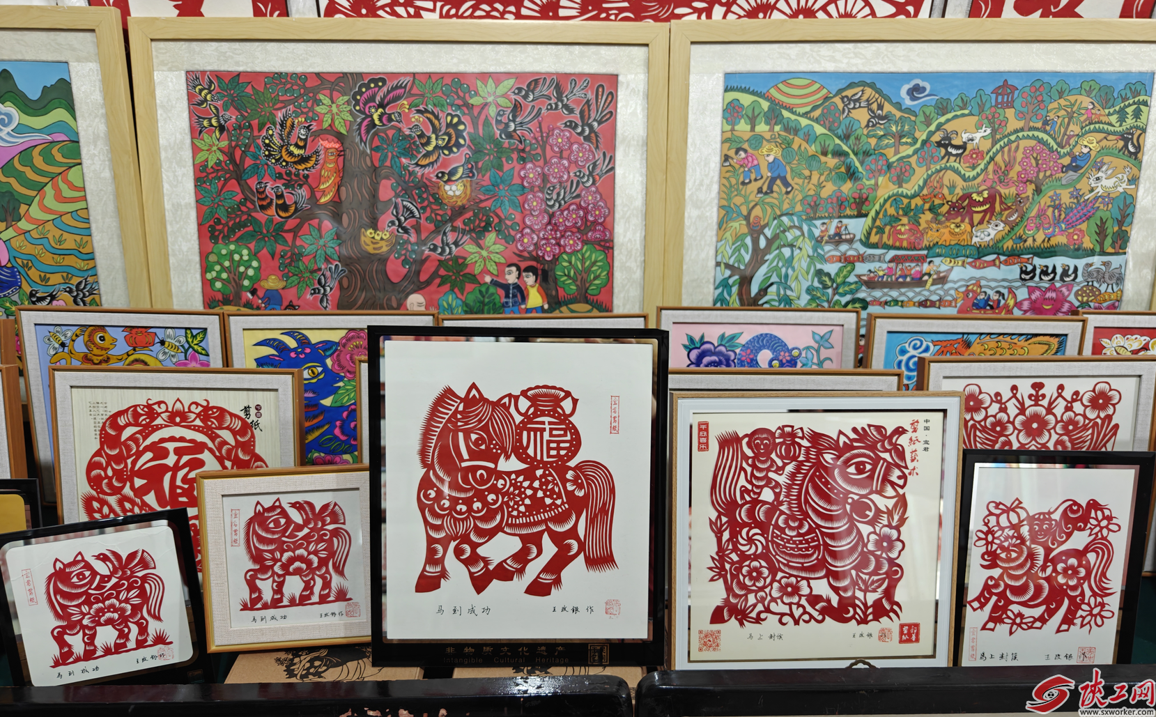 今年是马年,与马相关的剪纸图案格外受欢迎。“马上封侯”“龙马精神”“马到成功”……各种吉祥寓意的剪纸供不应求。王改银从腊月初就开始忙碌,已剪出上百幅作品。“每幅剪纸都要用心,因为带走它的人,带走的不只是一张纸,更是一份祝福。”她的话语里,藏着对这门手艺最深沉的理解。
