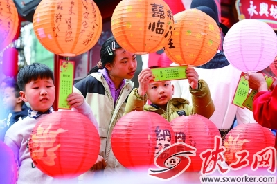 ③小朋友在西安市永兴坊参加猜灯谜活动。