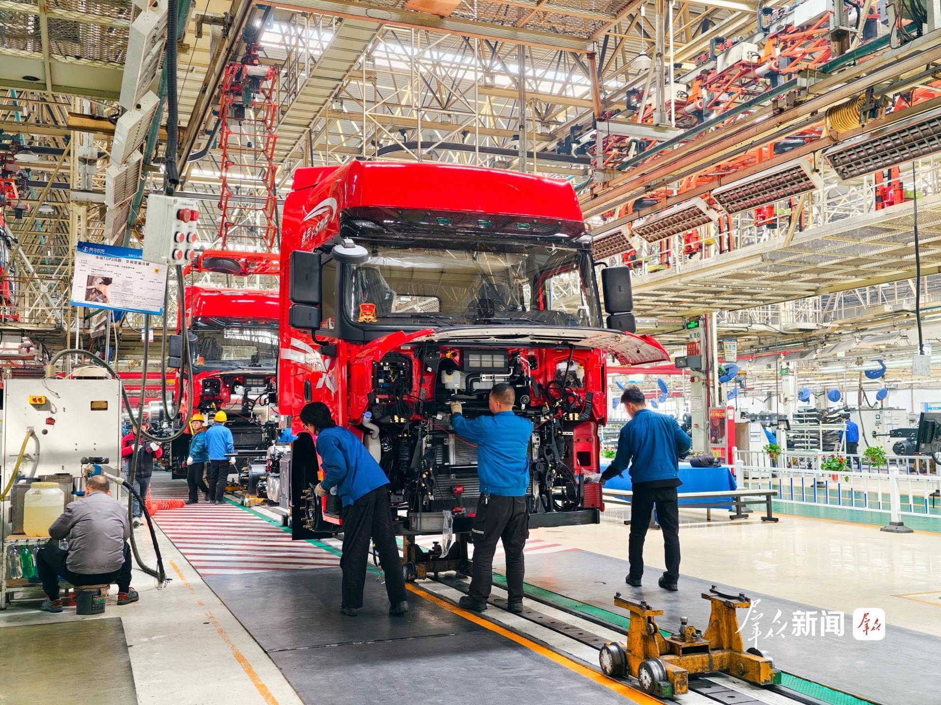 “今年,新能源车型订单明显增多,生产线高速运转。”陕汽新能源业务推进办公室副主任王华栋说,陕汽新能源重卡销量占国内市场的10%左右,每10辆新能源重卡中就有一辆来自陕汽。