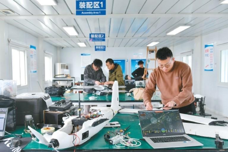 工作人员正在调试无人机