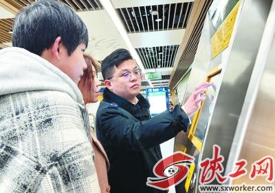 文/图 本报全媒体记者 张代棣 新春时节,客流涌动。2月26日8时,西安地铁9号线纺织城站人潮如织,行李箱滚轮声与闸机提示音交织回响。西安中铁轨道交通有限公司客运部纺织城中心站副站长李凡值守在服务台,不