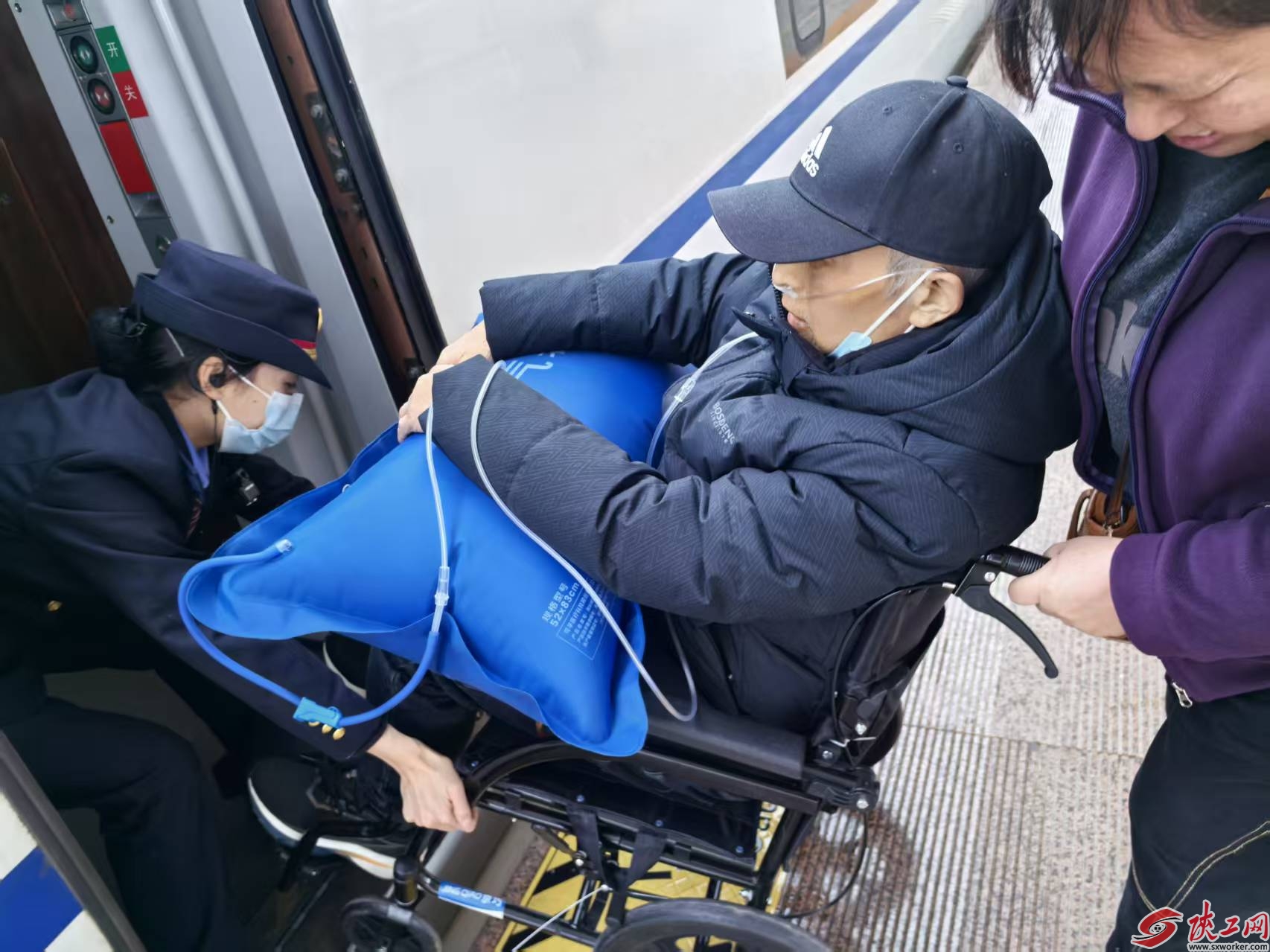 第一时间在车门口迎接旅客。 陕工网讯(史维) 3月5日,在沪杭12组值乘的G3296次高铁列车上,乘务员梁珂萌用细心、耐心与责任心,为一名患有哮喘的旅客全程提供暖心服务,温暖了旅客的整个旅途。 列车从
