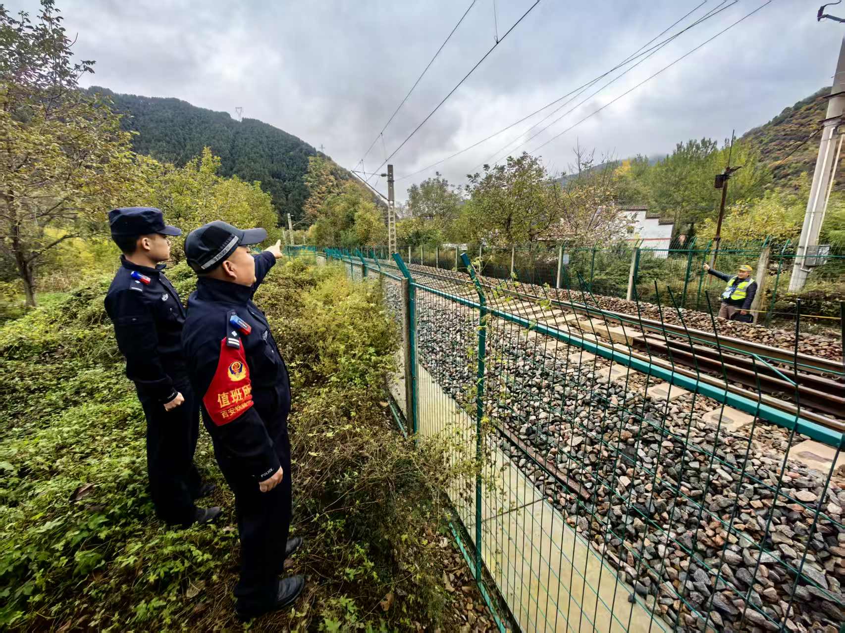 西安铁路公安处秦岭站派出所民警叮嘱铁路防洪点值守人员加强治安巡视。 西安铁路公安处秦岭站派出所民警对铁路沿线治安进行巡视检查。 西安铁路公安处秦岭站派出所民警实地查看铁路涵洞通道安全情况。 连