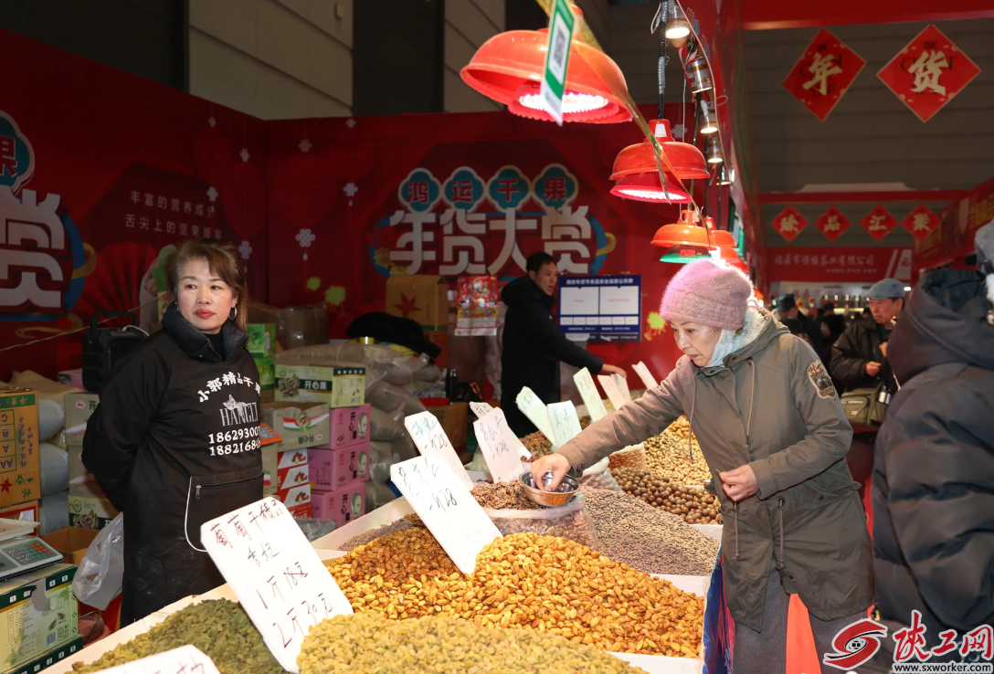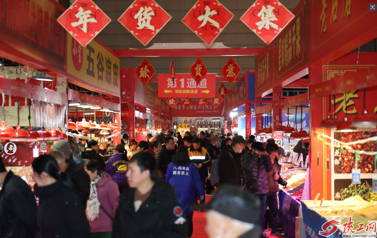 作为“西安年·最中国”重点展会项目,我家附近的年货会展出面积约1.6万平方米,集中展销了来自全国二十多个省市的糖酒食品、农副特产、茶叶茶具、生鲜冷冻、服装服饰、家居百货、美食小吃、年俗游乐等万余种年货产品,为市民提供了一个一站式购物的便捷平台。