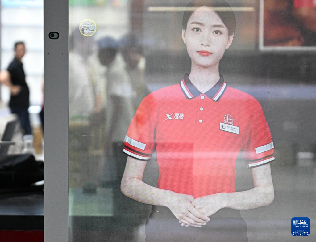 4月11日在第六届消博会主会场拍摄的中国石化数字员工。新华社记者 蒲晓旭 摄