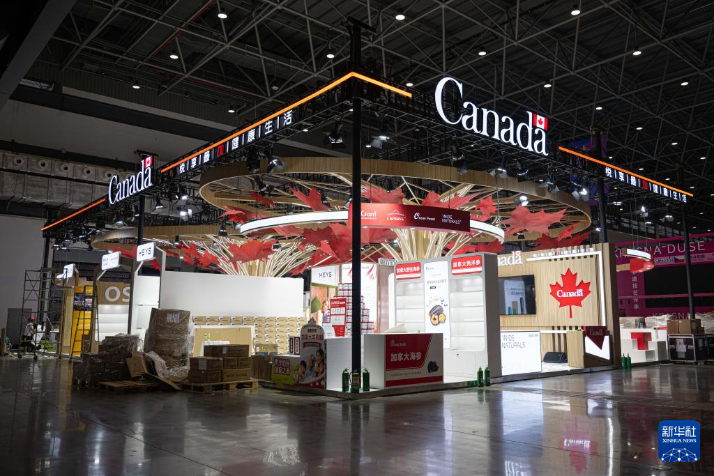 4月10日在第六届消博会主会场拍摄的布展中的加拿大国家馆。加拿大担任本届消博会主宾国。新华社记者 蒲晓旭 摄