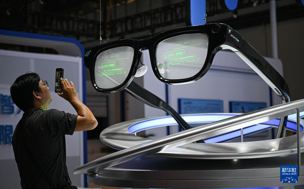 4月10日在第六届消博会主会场拍摄的AI眼镜模型。新华社记者 蒲晓旭 摄